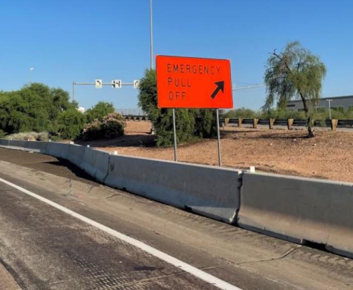 Crews sweep a newly created emergency pull off during a recent full freeway closure. We’ve seen preconstruction work for the Broadway Curve Improvement Project since the spring, on and around Interstate 10, from the Loop 202 (Santan/South...