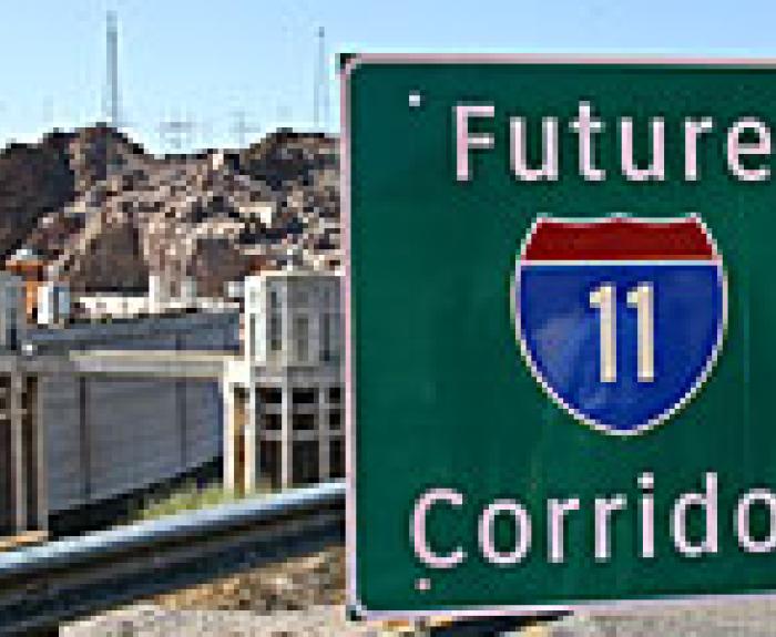 New signs mark the future I-11 corridor between Phoenix and Las Vegas. They were installed by ADOT along US 93, a likely route for the proposed interstate.