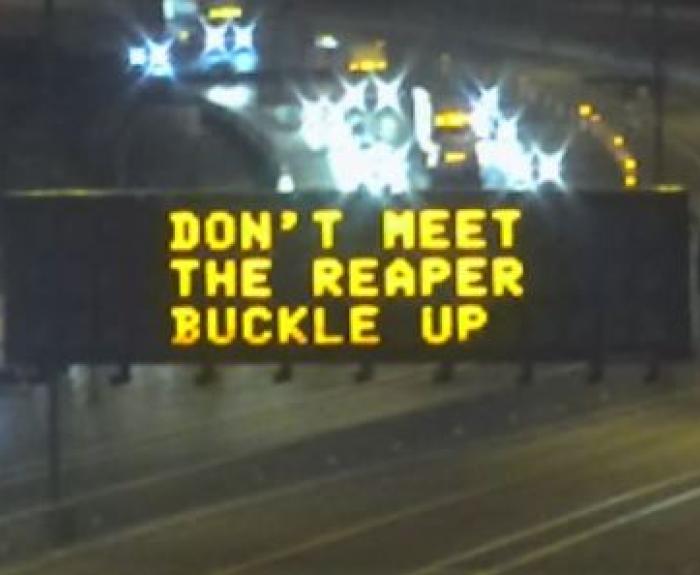 Encouraging drivers to make safe driving decisions, ADOT is displaying two Halloween-themed safety messages on overhead signs statewide.