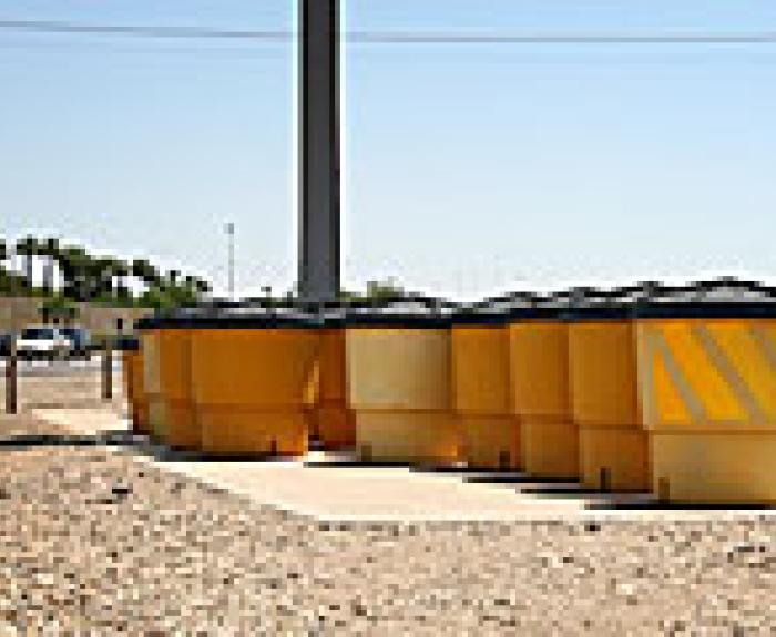 What’s filled with sand, weighs up to 1,400 pounds and is designed to save lives? If you answered a sand barrel crash cushion, you’re correct! And, if you didn’t have a guess then you’re probably asking: What’s a sand barrel crash cushion?