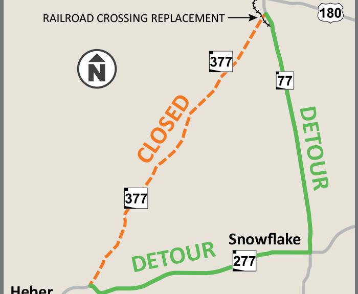 State Route 377 will be closed between Holbrook and the junction with State Route 277, about 5 miles northeast of Heber-Overgaard, during the week of May 14 while the Apache Railway Co. replaces a...