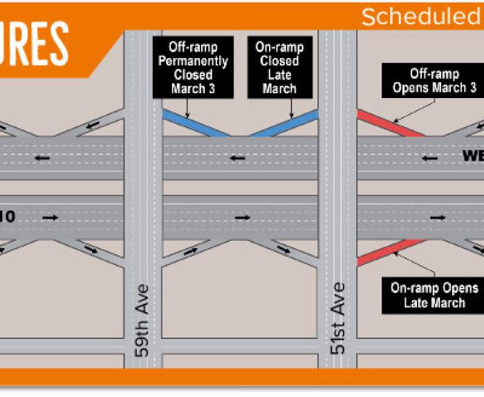 As work progresses on reconstructing Interstate 10 ramps between 51st and 67th avenues for construction on the Loop 202 South Mountain Freeway, the eastbound I-10 off-ramp at 67th Avenue will close...