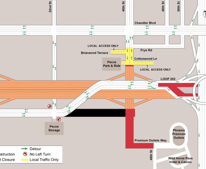 Another section of Pecos Road in Ahwatukee is closing permanently as traffic moves onto the future Loop 202 South Mountain Freeway’s westbound lanes between 32nd Street and the Interstate 10/Loop 202...