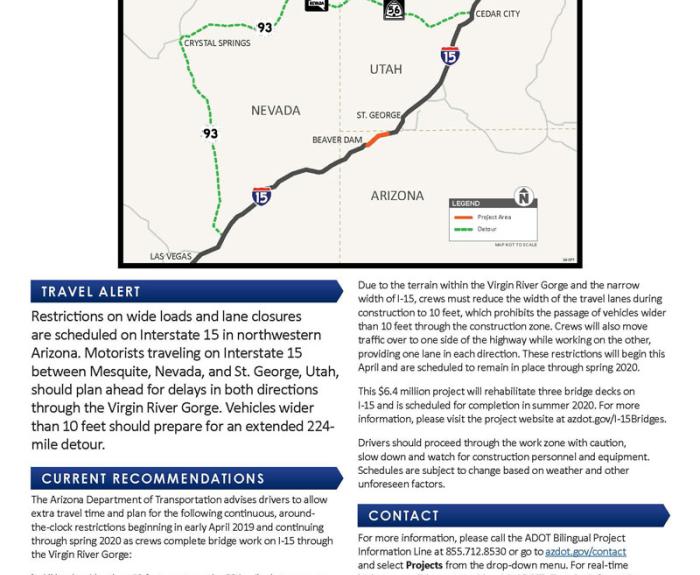 Motorists using Interstate 15 in far northwestern Arizona will need to budget extra travel time over the next year as the Arizona Department of Transportation improves the decks of three bridges...