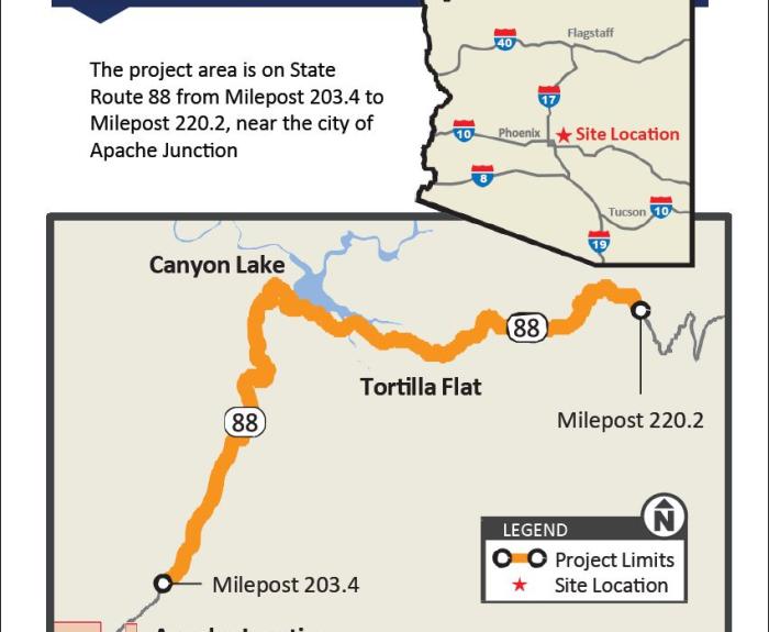 PHOENIX – A project to make several safety improvements along State Route 88, also known as the Apache Trail, will be discussed during the Apache Junction City Council’s meeting on Monday evening...