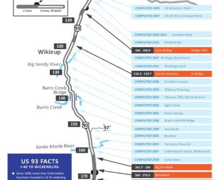 PHOENIX ‒ With five more miles of US 93 expanded to four-lane divided highway north of Wickenburg, the Arizona Department of Transportation is another step closer to its goal of transforming the 200...