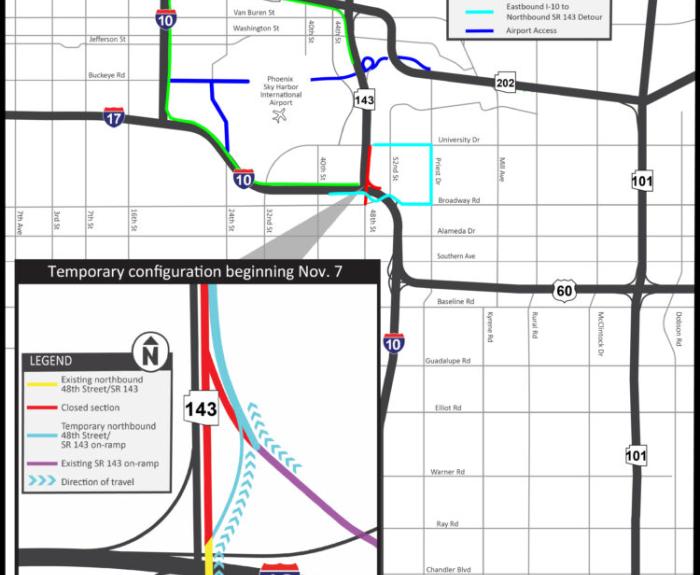 PHOENIX — The Arizona Department of Transportation is advising motorists to plan ahead and expect to use detours when traveling on State Route 143 this weekend. Northbound SR 143 will be closed...
