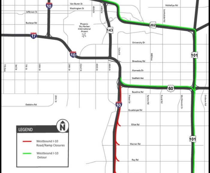 PHOENIX – The Arizona Department of Transportation advises motorists to plan ahead and allow extra travel time this weekend while westbound Interstate 10 is closed between US 60 and 32nd Street. Crews...