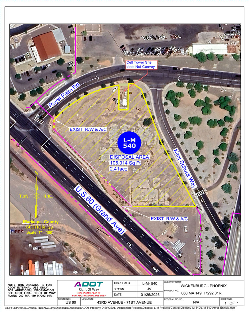 ±7,043 sq. ft. / ±0.16 acres Minimum Bid: $18,300 For additional details and instructions, please contact ROW Agent Amber Gibbs at [email protected] or phone at 602.712.7933. |