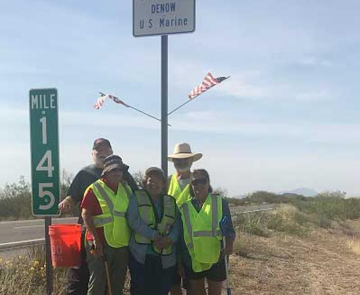 … Oneil, a Marine mom and a community servant to the core, is the volunteer behind a State … when she contacted me to learn whether her new Adopt a Highway sign would be installed by … him at this milepost, and this stretch of Arizona desert. Evie, as she is fondly known, …