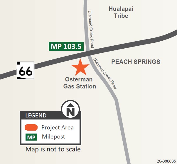 The Arizona Department of Transportation, in collaboration with the Hualapai Tribe, has initiated a project to document existing conditions and prepare a conceptual design report for the John Osterman/Shell Gas Station, which is listed on the National Register of Historic Places. The scoping project will be used to support future preservation and adaptive reuse projects and guide funding decisions. The historic gas station is located on the Hualapai Reservation in Peach Springs in Northwestern Arizona at 888 Historic Route 66.