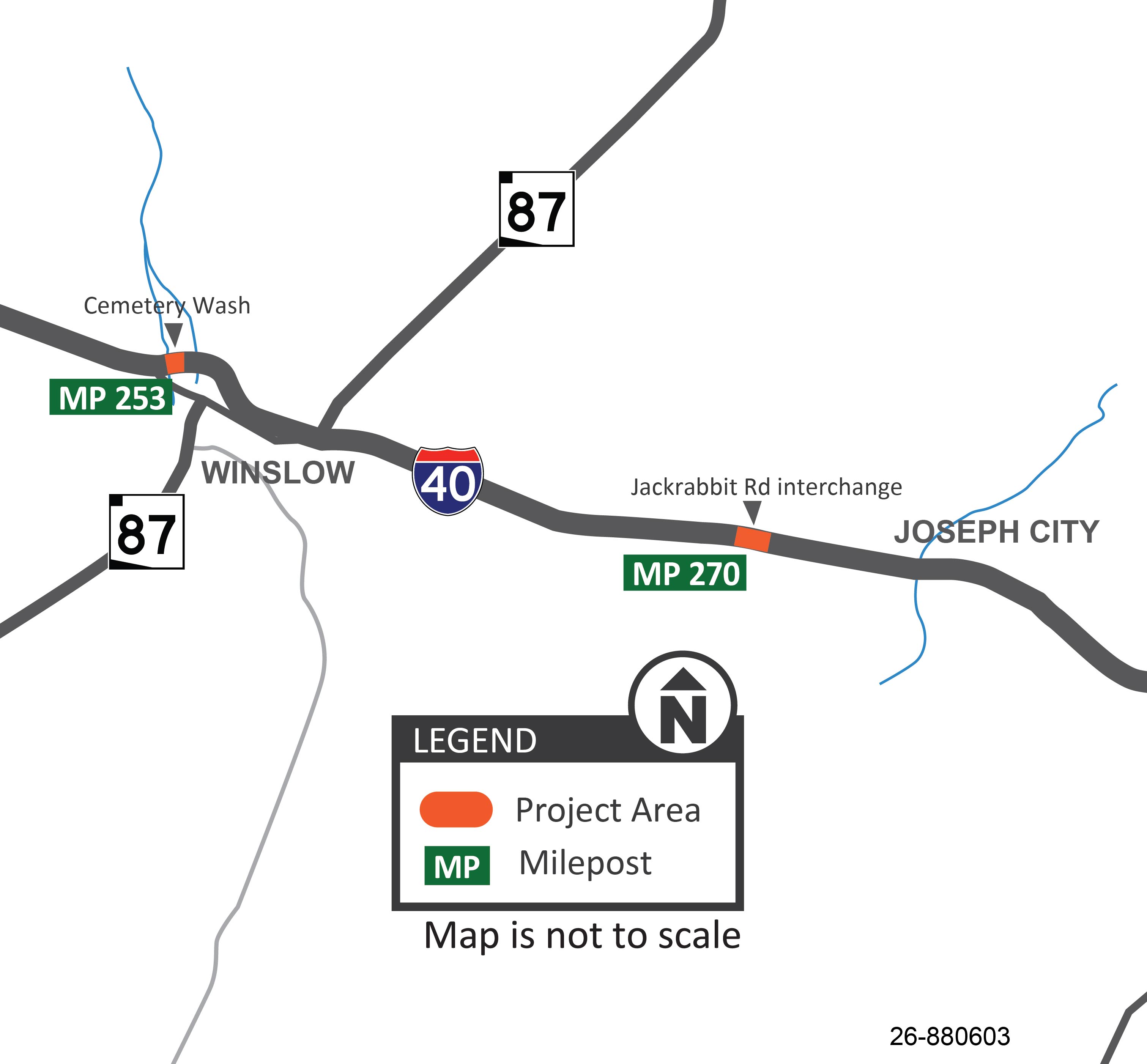 The Arizona Department of Transportation has initiated a rehabilitation project on two bridges along Interstate 40: the Cemetery Wash Bridge (eastbound only) in Winslow (milepost 253) and the Jackrabbit Road Bridge near Joseph City (milepost 270).