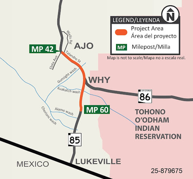 The Arizona Department of Transportation is tentatively scheduled to begin a pavement preservation project in spring 2026 on State Route 85 from milepost 42 (Elota Avenue) to milepost 60 in Ajo.