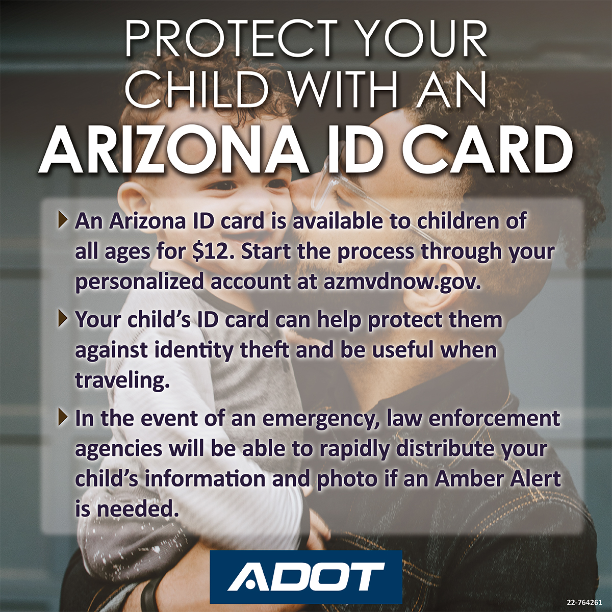 Having an Arizona ID card can help law enforcement agencies to rapidly distribute your child’s information and photograph in case of an Amber Alert. They can also protect your child against identity theft.