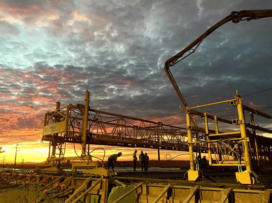 According to Kole Dea, an ADOT senior resident engineer who is overseeing the construction of the freeway's Papago segment, a Bid-Well “is a self-propelled piece of equipment that finishes cast-in-place concrete to a smooth, uniform finish. The roller travels back and forth to achieve this."