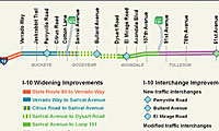 I-10 widening between Sarival Avenue and Verrado Way: $22 million stimulus-funded project included adding new third lanes in each direction. Work began in September 2009 and traffic is now using the new lanes.