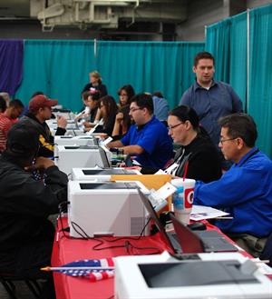 Dozens of MVD employees teamed with ADOT Information Technology staff to bring along 12 full work stations to the 2016 Maricopa County StandDown.